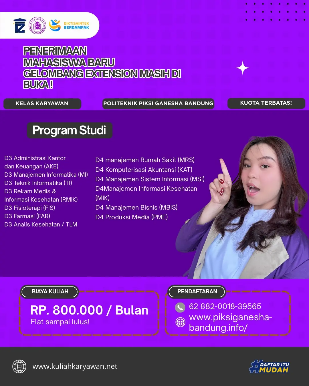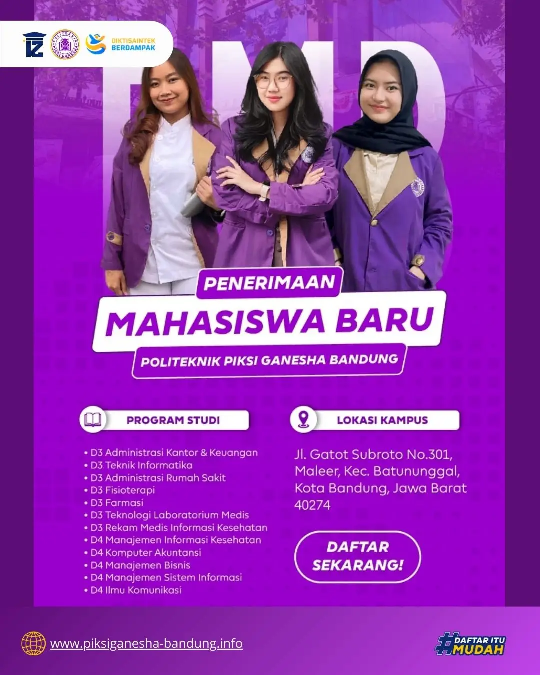 Politeknik Piksi Ganesha Bandung membuka jalan untuk pembelajaran bermakna dengan dukungan dosen berpengalaman dan fasilitas terbaik yang membantumu mencapai puncak kesuksesan