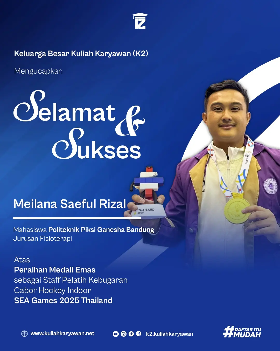 Selamat dan Sukses kepada Meilana Saeful Rizal, mahasiswa Politeknik Piksi Ganesha Bandung, Jurusan Fisioterapi, atas pencapaian luar biasa di ajang S......