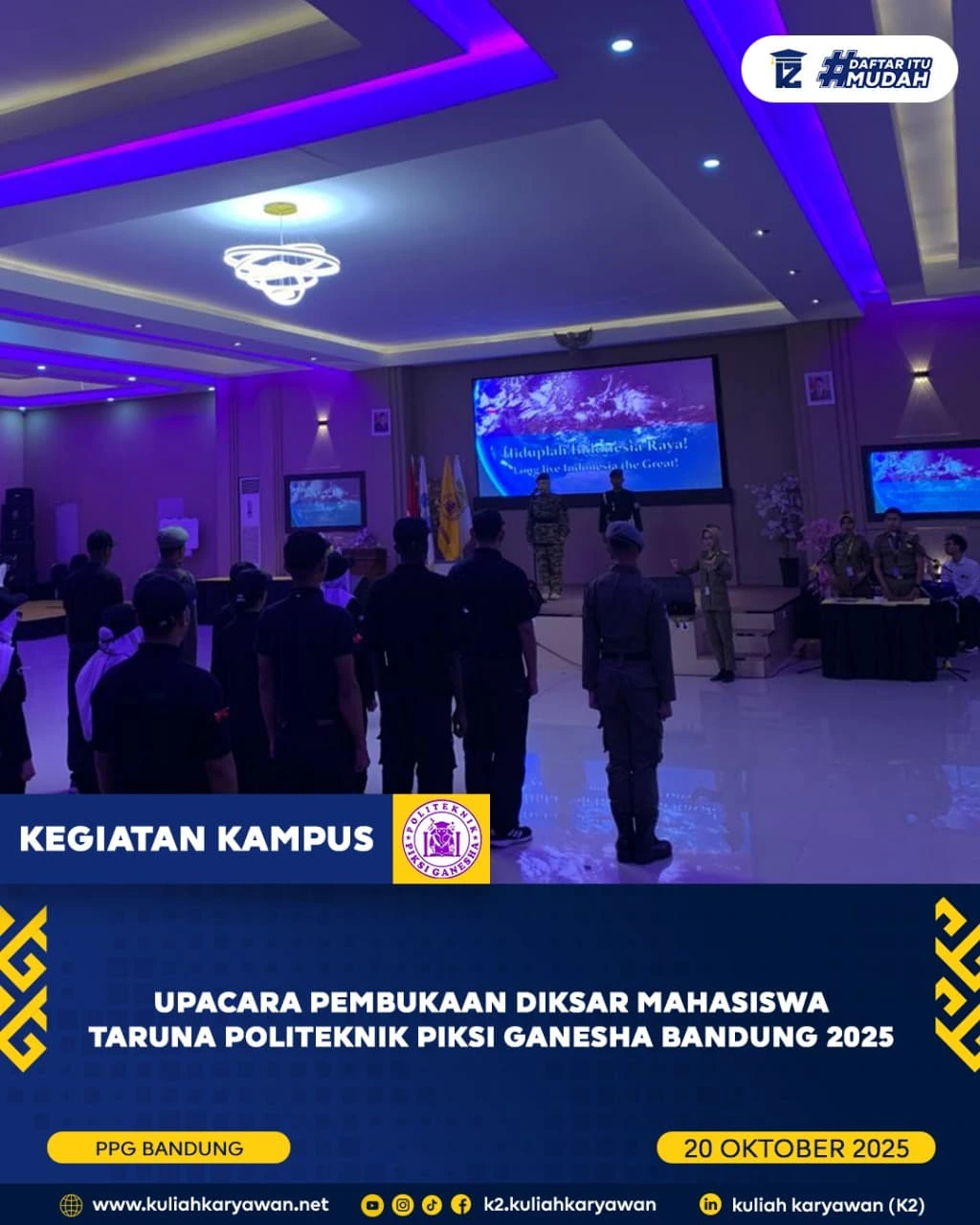 Tanggal 20 Oktober 2025, Politeknik Piksi Ganesha Bandung melaksanakan Upacara Pembukaan Diksar Taruna. Kegiatan ini menjadi tradisi tahunan yang mena......
